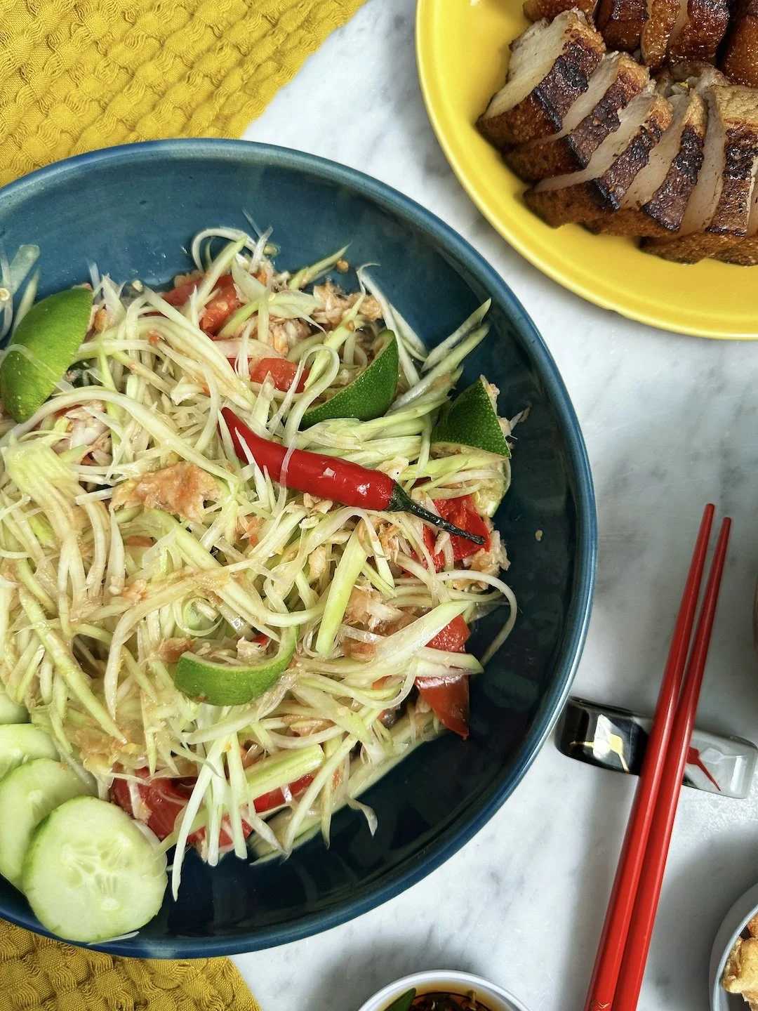 “Tam” in Laos means to “mash and mix” which is why you’ll always see this Lao favorite made in a mortar and pestle.