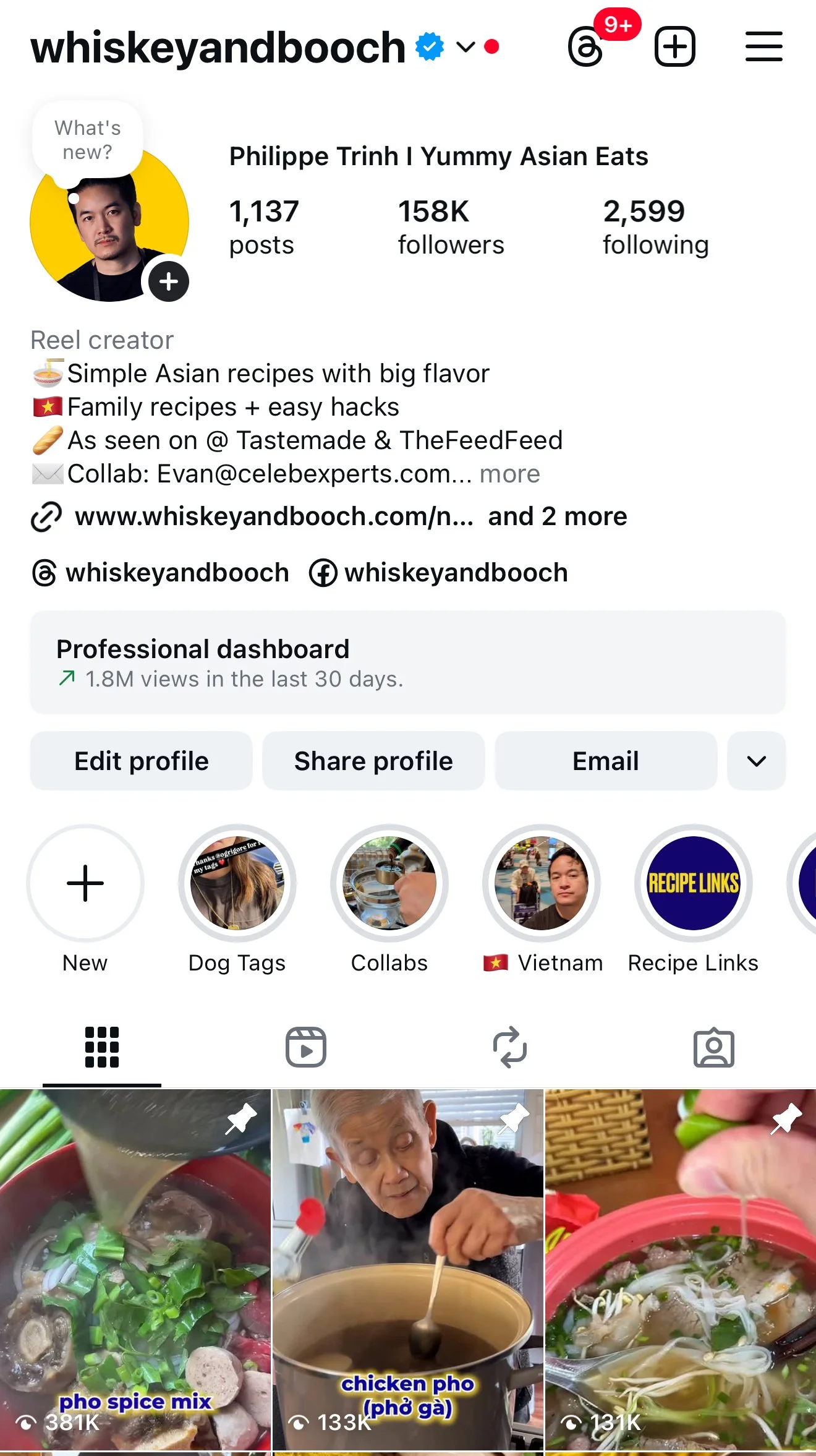 Viral posts include my Sriracha Recipe (7.4 million views) and my Tastemade Vietnamese soy eggs (3.4 million views).